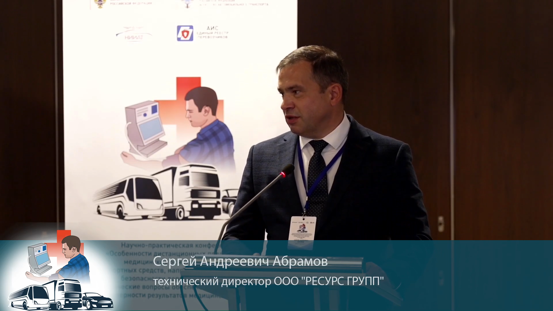 В рамках сессии «Практика организации и проведения дистанционного контроля состояния здоровья водителей» с докладом выступил технический директор «Ресурс Групп» Сергей Абрамов.